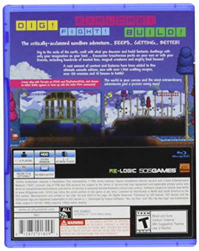 Dig, Fight, Explore, Build! The most extraordinary action-packed adventure is just a pickaxe swing away... Welcome to Terraria! Explore vast and vibrant worlds with your friends, and face the treacherous perils of Terraria including hundreds of twisted foes, magical creatures and mighty final bosses. Dig to literally the ends of the earth and then craft with what you discover to make amazing armor, weapons and other items. Build fantastic dwellings with only your imagination as your limit - the world is your canvas!Feature