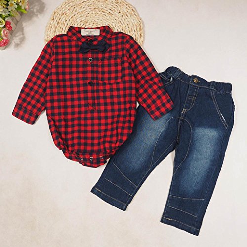 -. Title : AMA(TM) Toddler Baby Boys Grid T-shirt Tops +Jeans Pants Outfits Clothes Set