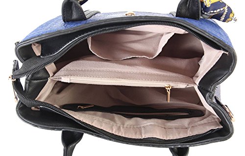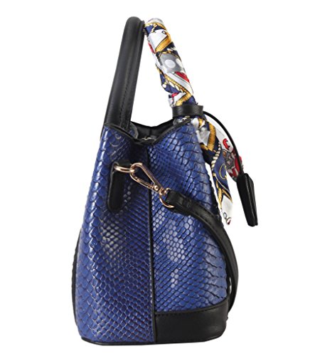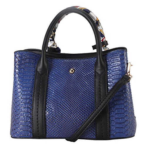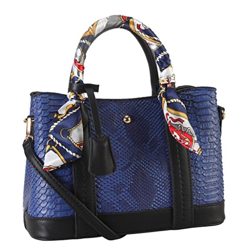-. Feature : This handbag comes in 5 different colors: Black, Blue, Brown, Red, and Taupe. / High Quality PU Leather Snake Skin Pattern Top Handle Handbag Accented with Scarves Décor Enlaced Womens Purse Handbag with Removable Strap. / High Quality Fabric Lined Interior with Multiple Interior Pockets. 2 Compartments with 1 Open Pocket and 2 Zippered Pockets Inside. / Approximate Size info: Length 10.2" x Width 4.6" x Height 6.5" Material: PU Faux Leather. Top Zipper Closure. / Color showing in other color is to show the different variation angles of the handbag. The actual bag ship, will be the one your purchesed.