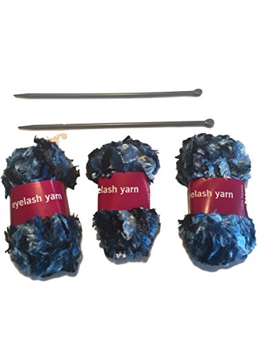 Eyelash Yarn Scarf Knitting Kit for Adults BLUE Super Soft Eyelash Yarn plus knitting needles. Makes 1 scarf.