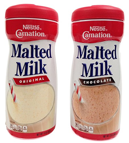 Nestle Carnation Malted Milk Powder, Chocolate and Orginal Flavor Bundle, 13 Oz Containers (2 Items)