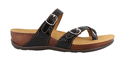 Studio : SAS Publisher : SAS Binding : Shoes Product Description Women's SAS, Shelly Slide on Sandals These slides are offer a stylish look and a customized fit! Leather upper Slide on style with two adjustable buckles to provide a customized fit, back strap is elasticized for a flexible fit Fabric linings Contoured lightweight insole is covered with a full length shock absorbing cushion and arch support for added comfrot 1 1/4 inch hand polished heel Manmade roomy outsole for added stability with Soft Step heel for extra support. Heel Height of 1.25 inches 0