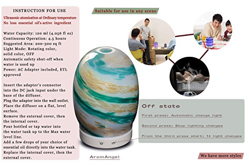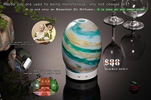 - 120ml Glass Housing Ultrasonic Diffuser fills with your favorite Essential Oil that can calm mood and relieve stress, prevent stubborn smoking and pet odors from spreading.