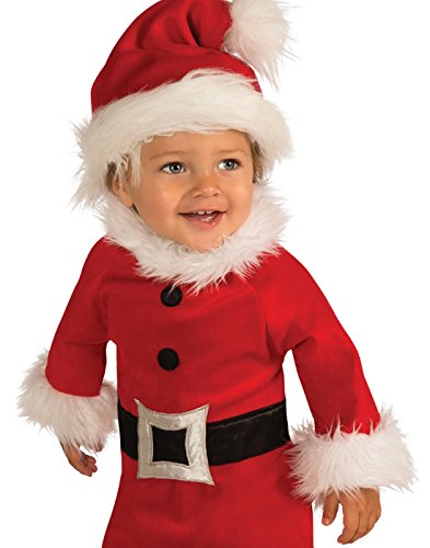 -. Binding : Apparel -. Brand : Rubie's -. Department : baby-boys -. Feature : Everyone gets to be Santa with help from Rubie's and this baby Santa Romper costume / Red romper with printed belt and faux fur trim has fabric fasteners / Hat and booties included / Costume sizing is different from apparel, be sure to review Rubie's size chart to make a buying decision / Rubie's offers holiday costumes and accessories in sizes and styles for the entire family -. Genre : Holiday - Christmas -. IsAdultProduct : 0 -. Label : Rubies Costumes - Apparel -. Manufacturer : Rubies Costumes - Apparel -. PackageQuantity : 1 -. ProductGroup : Apparel -. ProductTypeName : BABY_COSTUME -. Publisher : Rubies Costumes - Apparel -. Studio : Rubies Costumes - Apparel -. Title : Rubie's Santa Romper