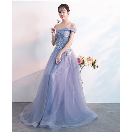 花柄刺繍が華やかなロングドレスです。