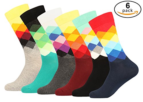 -. Title : Men's Funky Colorful Argyle Striped Pattern Long Dress Crew Socks For Business Casual