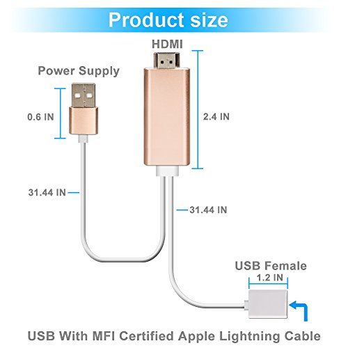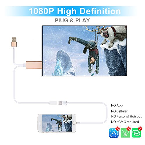 HDMI adapter for iPhone/iPad,which supports iPhone and iPad featuring the lightning connector,use it with iPhone or iPad to enjoy your favorite local or online entertainment easily on your HDTV or projector in up to 1080p HD display--movies,TV shows,music,video,audio.photo and more from youtube,IE browser,chrome browser and etc.