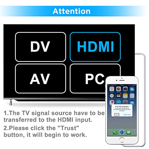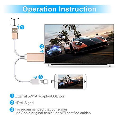 PLUG & PLAY: Without Any Driver/ Software/ APP needed, enjoy to sync cast your iPhone/ iPad screen to big TV screen.