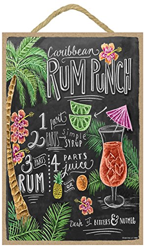 (SJT14860) Rum Punch Recipe 7" x 10.5" Wood Plaque Sign featuring the chalk artwork of Lily & Val