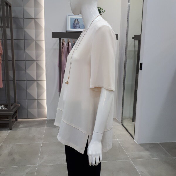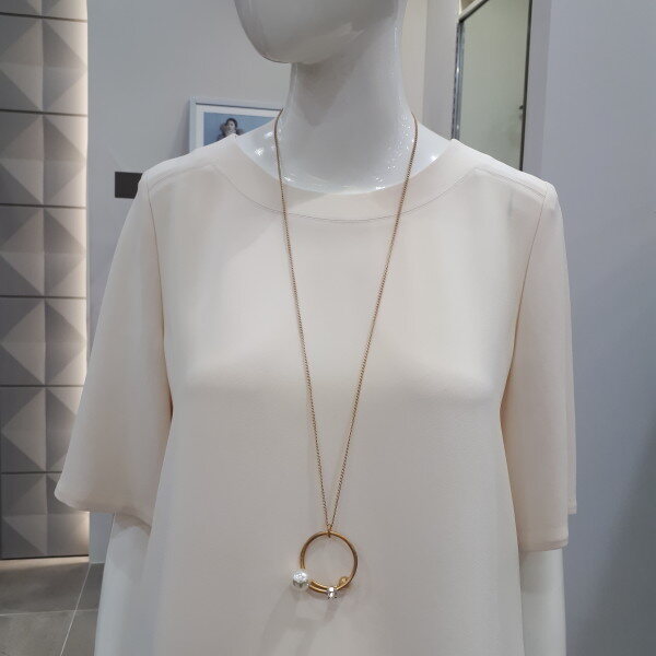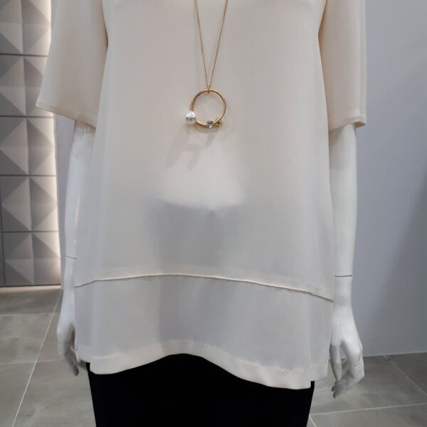 심플하고 단아한 블라우스에 목걸이로 고급스러움을 더했어요 55사이즈 총장 67cm 입니다