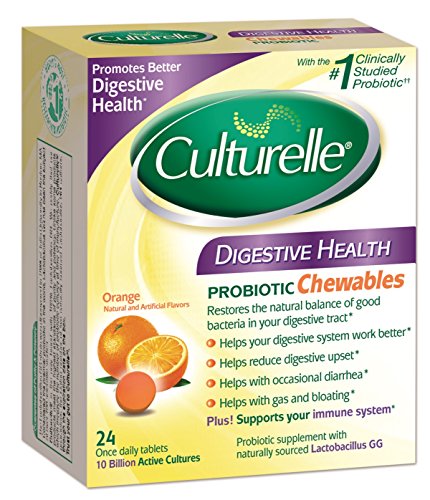 -. Binding : Health and Beauty -. Brand : Culturelle -. EAN : 0049100400228 -. Feature : Helps your digestive system work better / Helps reduce digestive upset / Helps with occasional diarrhea / Helps with gas and bloating. Plus, supports your immune system / Available in a great-tasting, sugar-free orange chewable. Safe for everyday use -. IsAdultProduct : 0 -. Label : Culturelle -. LegalDisclaimer : EXPIRES 2/2016IN NO EVENT, REGARDLESS OF CAUSE, SHALL ALL STAR SALES BE LIABLE FOR ANY INDIRECT, SPECIAL, INCIDENTAL, PUNITIVE OR CONSEQUENTIAL DAMAGES OF ANY KIND, WHETHER ARISING UNDER BREACH OF CONTRACT, TORT (INCLUDING NEGLIGENCE), STRICT LIABILITY OR OTHERWISE, AND WHETHER BASED ON THIS AGREEMENT OR OTHERWISE, EVEN IF ADVISED OF THE POSSIBILITY OF SUCH DAMAGES. ALL STARS SALES HOLDS NO LIABILITY FOR ANY DAMAGES OR PROBLEMS FROM USE OF ANY PRODUCTS SOLD, AS WE ARE A THIRD PARTY SELLER. ALL PRODUCTS MUST BE USED AS DIRECTED AND AT YOUR OWN RISK OF RESPONSIBILITY. -. Manufacturer : Culturelle -. Model : AMR-029 -. MPN : AMR-029 -. NumberOfItems : 1 -. PackageQuantity : 1 -. PartNumber : AMR-029 -. ProductGroup : Health and Beauty -. ProductTypeName : HEALTH_PERSONAL_CARE -. PublicationDate : 2014-01-30 -. Publisher : Culturelle -. ReleaseDate : 2014-01-27 -. Size : 24 -. Studio : Culturelle -. Title : Culturelle Digestive Health Chewable Tablets, 24 Count -. UPC : 885376783739