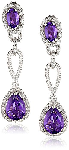 -. Title : Sterling Silver Amethyst Pear Shape and Diamond Drop Earrings (1/10cttw, I-J Color, I2-I3 Clarity)