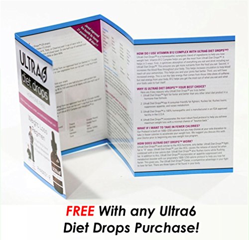 -. Binding : Health and Beauty -. Brand : Ultra6 Nutrition -. EAN : 0639713568714 -. Feature : 100% MONEY BACK GUARANTEE - Your satisfaction is what drives us to provide the highest quality diet product that really does work. If you are not completely satisfied with your purchase feel free to return it to us for a full and prompt refund. / PROVEN RESULTS - Our homeopathic diet drops product is time tested. Having been on the market since 2011, we have thousands of customers who have found great success with our weight loss drops. / WORKS FAST AND EFFECTIVELY - The combination of our diet drops' product and diet system, help burn belly fat fast and effectively with little to no exercise necessary. / FREE DIET PROTOCOL, COOKBOOK AND TELEPHONE SUPPORT - You receive a free diet protocol (brochure) with the purchase of our Ultra6 Diet Drops. We also provide free telephone support for questions and guidance with our diet system along with great-tasting low calorie cookbook (compare to the Clean Eating Cookbook & Diet ). / MADE IN USA - Our Ultra6 Diet Drops' product is made in the USA by an FDA Inspected and GMP Certified Facility. -. IsAdultProduct : 0 -. Label : Ultra6 LLC -. LegalDisclaimer : Must be 18 years or older to purchase. -. Manufacturer : Ultra6 LLC -. MPN : na -. PackageQuantity : 1 -. PartNumber : na -. ProductGroup : Health and Beauty -. ProductTypeName : HEALTH_PERSONAL_CARE -. Publisher : Ultra6 LLC -. Studio : Ultra6 LLC -. Title : Ultra6 Diet Drops Complete Weight Loss System - Proven Diet Guide Included -. UPC : 639713568714