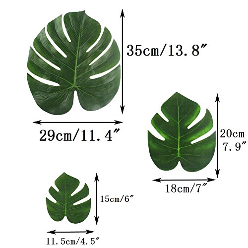 SIZE: Green tropical imitation plant leaves are in 3 different sizes,Looks like real leaves. Make your guests think that they see the real leaves,These green leaves will add fresh natural scenery!