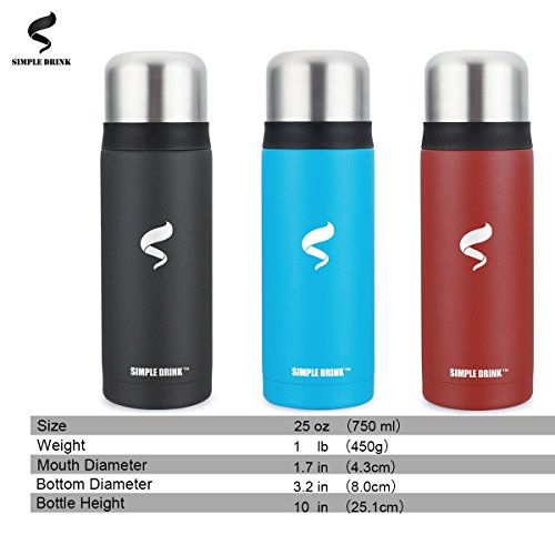 Simple Drink 25oz BPA Free Insulated Water Bottle - Stainless Steel Thermos Coffee Travel Mug - Vacuum Sealed Hydro Metal Flask for Outdoor Home Office School, Keep Ice Cold up to 36 Hours!
