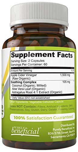 Studio : NutraSkye Labs Publisher : NutraSkye Labs Product Description Apple Cider Vinegar (ACV) has been traditionally used for treating what ails you for thousands of years often referred to as a traditional natural folk remedy for a variety of health purposes. It is known to be a great way to detoxify, flushing out toxins and killing bacteria in the body which leads to a better functioning body overall. Some use Apple Cider Vinegar for the following Aliments: -Heartburn, Acid Reflux -Healthy Cholesterol -Healthy Weight Management -Glucose Control -Appetite Suppressant -And so much more.... Our Premium Apple Cider Vinegar 1500 boasts a powerful 1500mg per serving of Raw Organic Apple Cider Vinegar. We give you a "clean" product without all the extra fluff ingredients that other brands brag about. With just 4 ingredients you get powerful cleansing properties, with a stomach soothing blend to accomplish whatever ails you. Why Choose Purely Beneficial's Apple Cider Vinegar 1500? Simple...You are getting the purest form of key ingredients for your body. Designed and formulated for Maximum effect and a wealth of benefits. Our mission as a company is to provide you with the highest quality ingredients we can get our hands on for each and every product we produce. Our facility is FDA Inspected, and maintains strict cGMP Standards, being made only here in the USA. We stand behind our products offering a 100% Money Back Satisfaction Guarantee. Start Enhancing your Health Today, both Inside and Out! 0