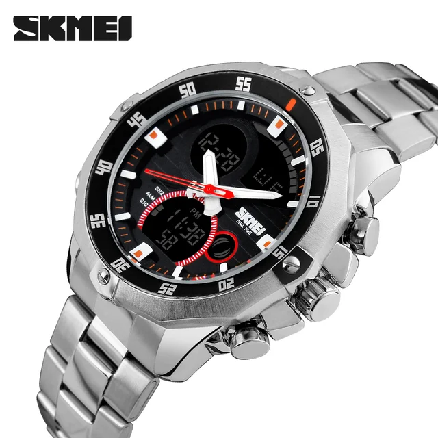 럭셔리 브랜드 Skmei 남성 시계 다기능 육군 군사 디지털 아날로그 석영 날짜 LED 스테인레스 스틸 스포츠 손목 시계