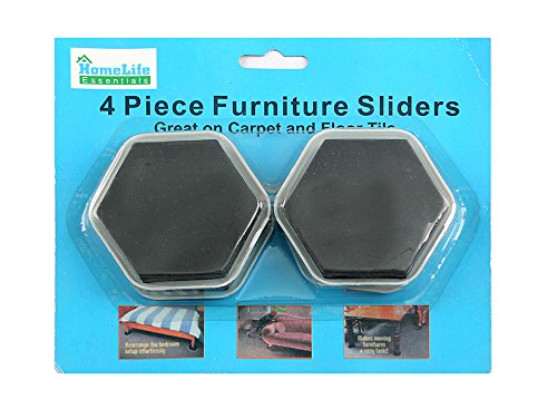 -. Feature : EASY FURNITURE MOVING - These sliders can be placed underneath furniture for smooth floor gliding and easy transport. / IDEAL FOR CARPET - The sliders are made with a durable rubber foam that provides a secure grip on your furniture that can be left under furniture for easy moving and cleaning, or removed to be used again and again / FUNCTIONAL - Perfect if you are cleaning, redecorating, painting, or moving / WON'T SCRATCH OR DAMAGE FLOORS - These versatile sliders will not scrape or damage any of your surfaces. / Pack of 4