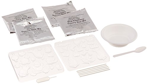 Includes 2 mold trays, 4 9 oz gummy mix packets, 6 lollipop sticks, mixing bowl, pipette & mixing spoon.