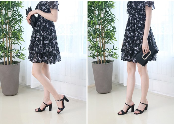 商品名:サンダル レディース 太ヒール チャンキーヒール ミュール ハイヒール 2018 夏 ファッション 靴 婦人靴