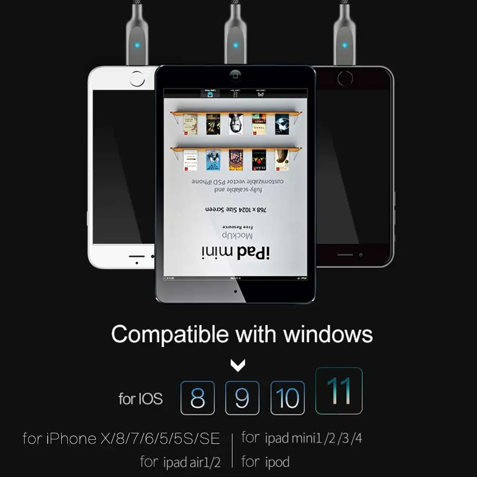 Compatible 3:Cable for for iPad Mini 1 /2 /3 /4