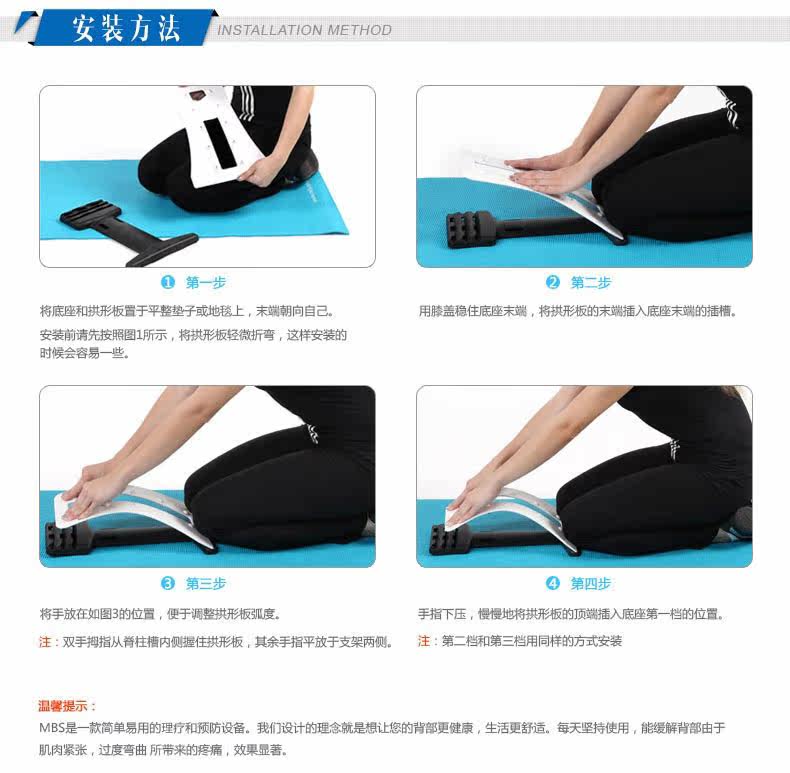 1、用于拉伸腰椎骨和周边的肌肉群,舒缓腰部压力;