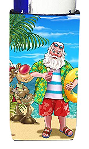 Caroline's Treasures Beach Christmas Santa Claus Swimming Michelob Ultra Koozies for Slim Cans, Multicolor