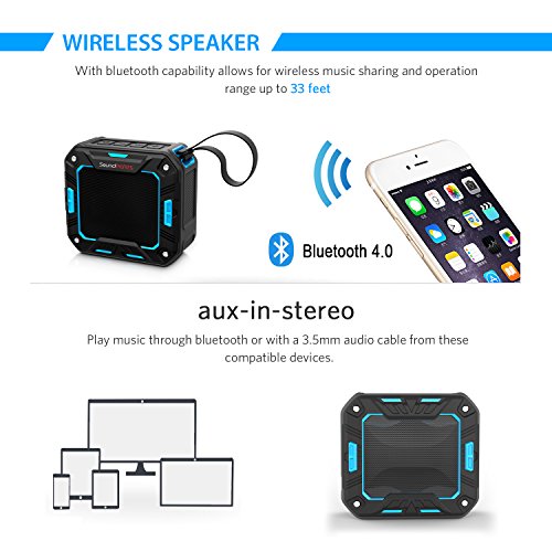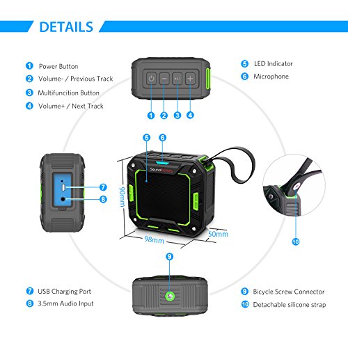 【Tragbar und Leicht】Ein benutzerfreundliches Design mit Universal Fahrrahalterung sowie abnehmbarem Silikonband lasst sich der Mini-Lautsprecher uberall bringen. Kompatibel mit fast allen elektronischen Musikspiel-Geraten wie PC, Laptops, MP3-Player, Smartphones, Tablets dank Bluetooth-Funktion und 3.5mm Audio Kabel