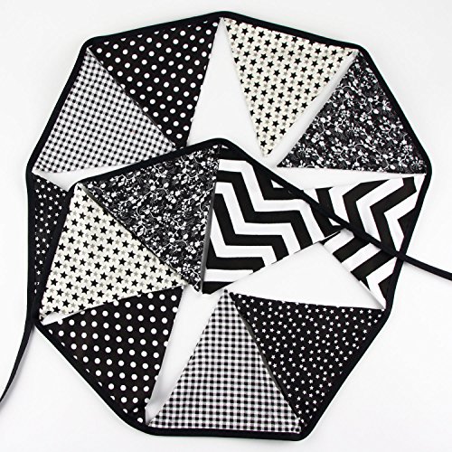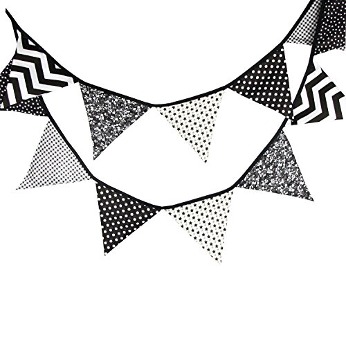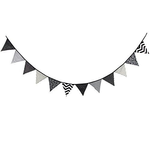 Vintage Floral Pennant Cotton Fabric Bunting Banners Hanging Garland for Baby Shower, Indoor and Outdoor Party Decoration (Black&Grey)
