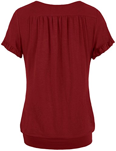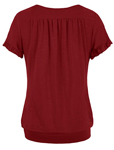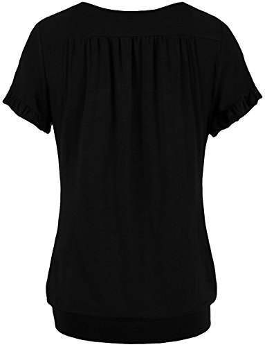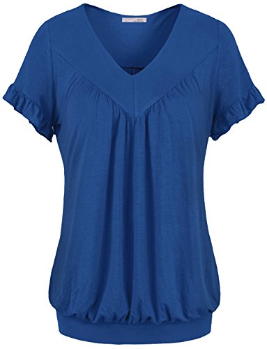 -. Feature : Sexy V neck, ruffles sleeves, pleated front makes you look slimming and stylish.It is super fashionable, fits like a dream, and breathes so you do not get over heated in the summer.You can dress it up with a blazer or jacket for the office or wear it with jeans. It can go fancy / dressy OR edgy depending on how you style it.Loose around the abdominal area to hide the belly and tight on the bottom. / Visually lengthen the neck lines,makes your chest looks more stereoscopic. / Machine washable,hand wash recommended. / Fabric Material: 95% Rayon, 5% spandex. / Please refer to size chart under the Product Description before ordering.