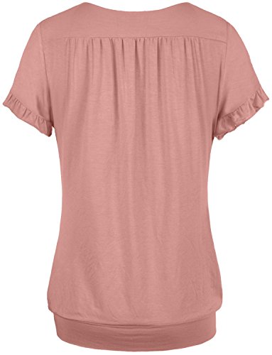 -. Title : Messic Womens V Neck Short Sleeve Draped Patchwork Knitted Tunic Blouse Top