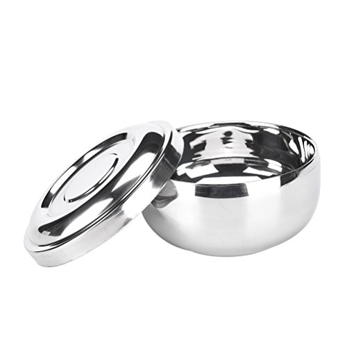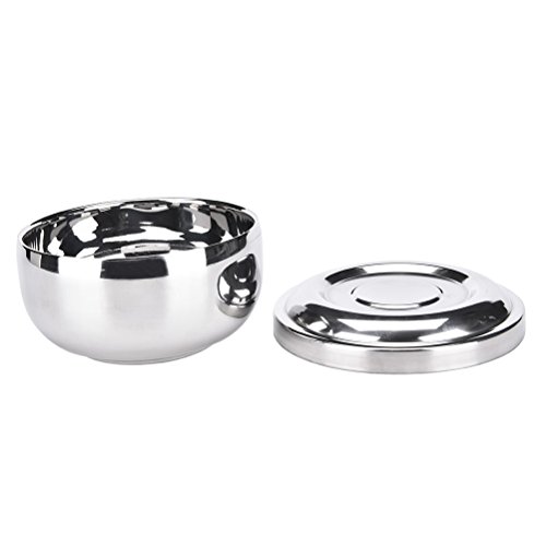 DUAL LAYER STAINLESS WET SHAVER'S BOWL WIH LID: Many shave bowls are just too small and there is no room to effectively use a shave brush to work a lather or they are flat and don't hold curved-bottom soaps well; this bowl is large enough to use, has a lid to keep your soap fresh and clean, and has a curved interior bottom perfect for many refill shapes