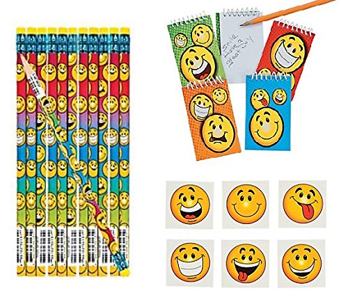 (OTC)/Stationery Party Supplies/Party Supplies/DIRECT FROM USA/60 Silly SMILE FACE Party Favors - PENCILS Notepads TATTOOS - Birthday GOODIES - Smiley HAPPY 6...
