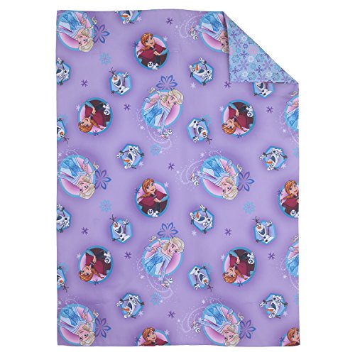ReleaseDate : 2016-12-09 Studio : Corwn Crafts Infant Products, Disney Publisher : Corwn Crafts Infant Products, Disney Binding : Baby Product Product Description Stir up some fun in your little one's room with the Disney Frozen "Stirring Up Fun" 4-Piece Toddler Bedding Set! This toddler-sized set includes a quilted comforter, fitted bottom sheet, flat top sheet, and standard size pillowcase. The quilted lavender comforter features Anna, Elsa, and Olaf popping from aqua circles against a purple snowflake pattern. Turn the comforter back to reveal a snow-white fitted sheet featuring the three friends in their signature designs and poses and a blue flat sheet with a beautiful snowflake mini-print in aqua, lavender, and purple. A double-sided pillow case features Anna, Elsa, and Olaf against a pretty patterned background of lavender and aqua on one side and Princess Anna dancing with Olaf and the snowgies on the other. 0