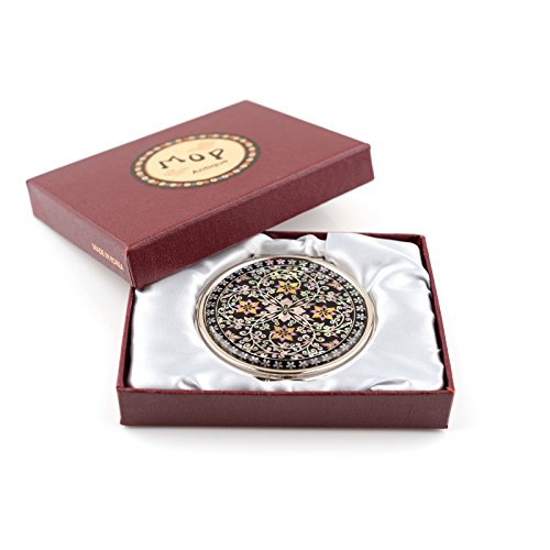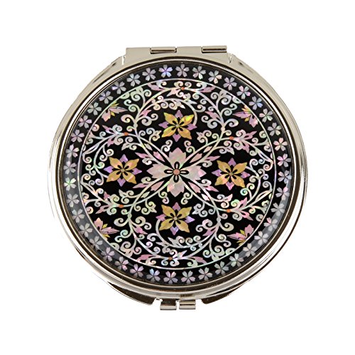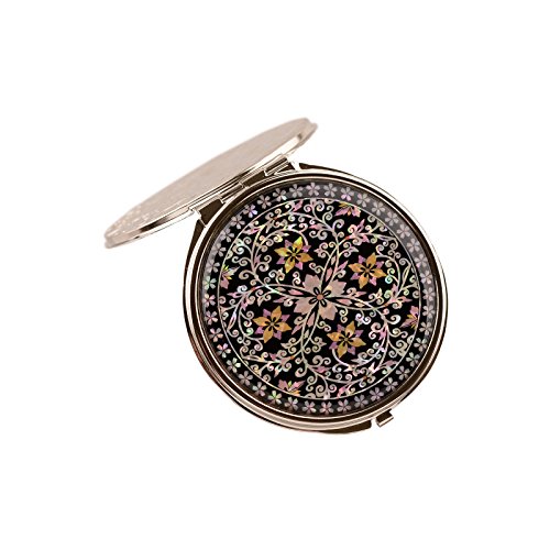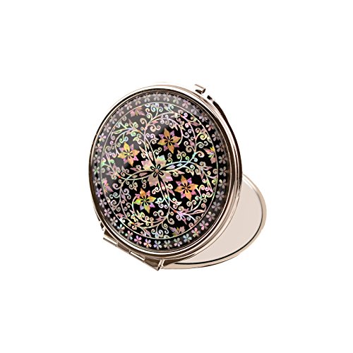 Round Compact Magnifying Make up Double sided Mirror Mother Of Pearl Art Flower Vine