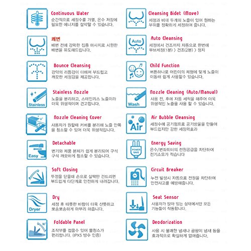 -. Feature : Brand: Novita / Voltage: 220V / 60Hz / 1450W / Size: 526*472*150 mm / 3.5kg / Features & Functions: Continuous Warm water, Auto Cleansing, Child, Nozzle Cleaning / Stainless Nozzle, Soft Closing, Seat Sensor, Dry, Bounce cleansing, etc Refer to Picture