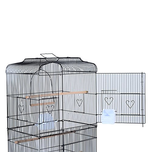 Studio : MTN Gearsmith Publisher : MTN Gearsmith Binding : Misc. Product Description Keep your pet stimulated, safe and happy with this indoor bird cage that promotes well-being and longevity for your feathered friends. Double doors can be easily opened and closed for convenient access. Finch, parrot, cockatiel, canary, macaw, parakeet and others can benefit from the physical and mental stimulation provided by an enclosure that provides plenty of living space and room for activity. Birds can stay on wooden perch and eat/drink from containers. 4 universal wheels with brake help for smooth and safe movements. Features : ? Made of solid powder-coated metal, steel wire and durable plastic construction for years of use and enjoyment ? 4 universal wheels with brake ensures quick and safe movement ? Pet-friendly design ensures birds don't get caught on or stuck in-between openings ? 2 oversized doors located at the front for easy access to the inside area ? Detachable main body with convenient handle at the top for handy transport ? Easy to access slide-out plastic tray on the bottom makes clean up simple ? Includes 4 wooden perches and 4 plastic food containers for you and your birds to enjoy ? Accord with American export standard. Specifications: ? Material: Metal wire, steel tube, wood, PS ? Color: Black ? Net Weight: 32lbs ? Overall Dimension: 18.7"L x 14.6"W x 63"H ? Bird Cage Dimension: 18.7"L x 14.2"W x 35.8"H ? Supporting Frame Dimension: 18.7"L x 14.6"W x 27.4"H ? Bottom Tray Dimension:18.7"L x 14.2"W x 3.74"H ? Large Door Size: 12.2"L x 11.8"W ? Small Door Size: 5.3"L x 4.3"W ? Accessories: 4 x Hampers 4 x Wooden Perches 0