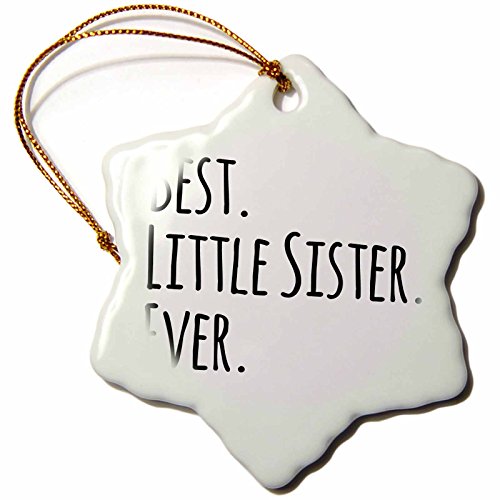 3dRose orn_151538_1 Best Little Sister Ever Gifts for Younger and Youngest Siblings Black Text Snowflake Porcelain Ornament, 3-Inch