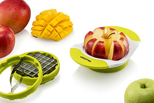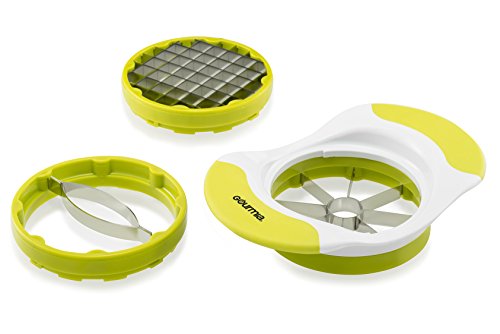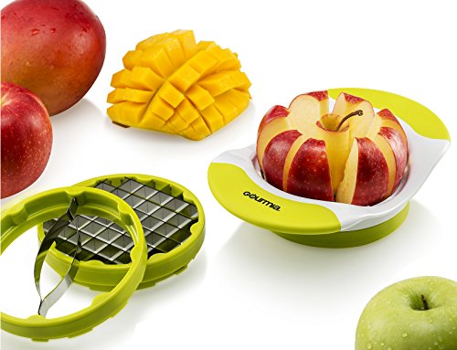 Gourmia GCU9250 3 In 1 Handle Push Cutter, Mango, Apple Slicer & Corer With Bonus French Fries Blade, 3 Stainless Steel And Interchangeable Blades, Durable BPA free food safe material