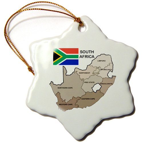 3dRose orn_99132_1 Political Map and Flag of South Africa with All The Provinces Identified by Name -Snowflake Ornament, 3-Inch, Porcelain