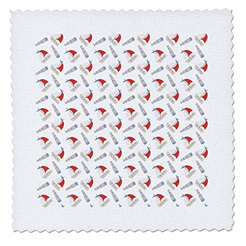 3dRose qs_210921_3 Red & Blue Sailboats & Telescopes Pattern Quilt Square, 8 by 8"