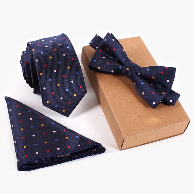 | [해외]세트 넥타이 넥타이 네이비 레드 옐로우 블루 화이트 도트 나비 넥타이 손수건 세트 많은 |