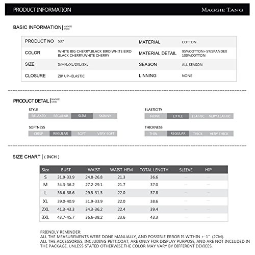 -. Binding : Apparel -. Brand : Maggie Tang -. Department : womens -. Feature : The size is not a big size, please read the size chart in the product description carefully ,if you are not sure of the size, one size up is a good idea. / 100% cotton . Classic and iconic style that will never be out of fashion . / This swing dress has a really full circel skirt . / Get the full 50's look (as in the main picture) by wearing with a 22" length petticoat, available to purchase separately. Petticoat not included. / Designed by Maggie Tang! -. ProductGroup : Apparel -. ProductTypeName : DRESS -. Title : Maggie Tang Women's 1950s Vintage Rockabilly Full Circle Swing Party Dress