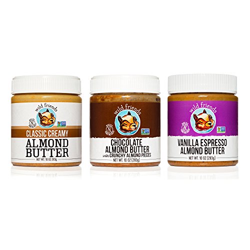Wild Friends Foods Almond Butters Variety Pack, Classic Creamy, Chocolate, Vanilla Espresso, 10oz, Pack of 3