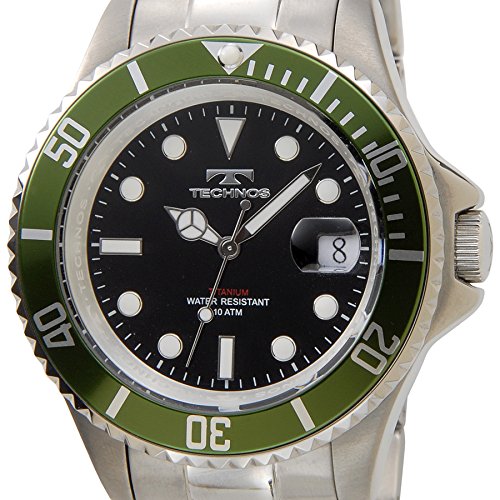 [테크노스]TECHNOS T4323IM 오리지날 모델 풀 티타늄제 다이버 모델 경량95g 블랙×그린 맨즈 (병행수입품)