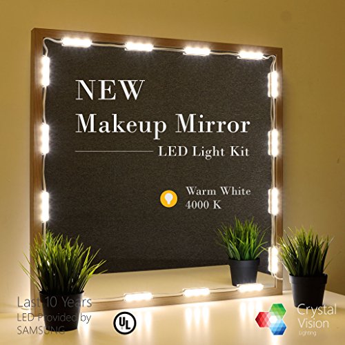 Crystal Vision hollywood style Makeup Mirror LED Light Kit Provided by Samsung for Cosmetic Mirror Vanity Mirror w/ Touch Dimmer Controller (12.5ft / 25 Light) (Slim Warm White)