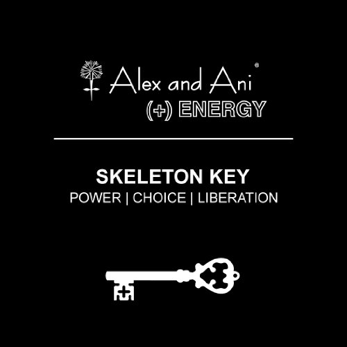 Handmade bangle bracelet crafted from recycled material featuring skeleton key pendant and three stamped Alex and Ani charms