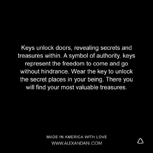 Keys unlock doors, revealing secrets and treasures within. A symbol of authority, keys represent the freedom to come and go without hindrance. Wear the key to unlock the secret places in your being. There you will find your most valuable treasures.Feature