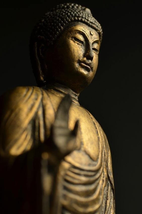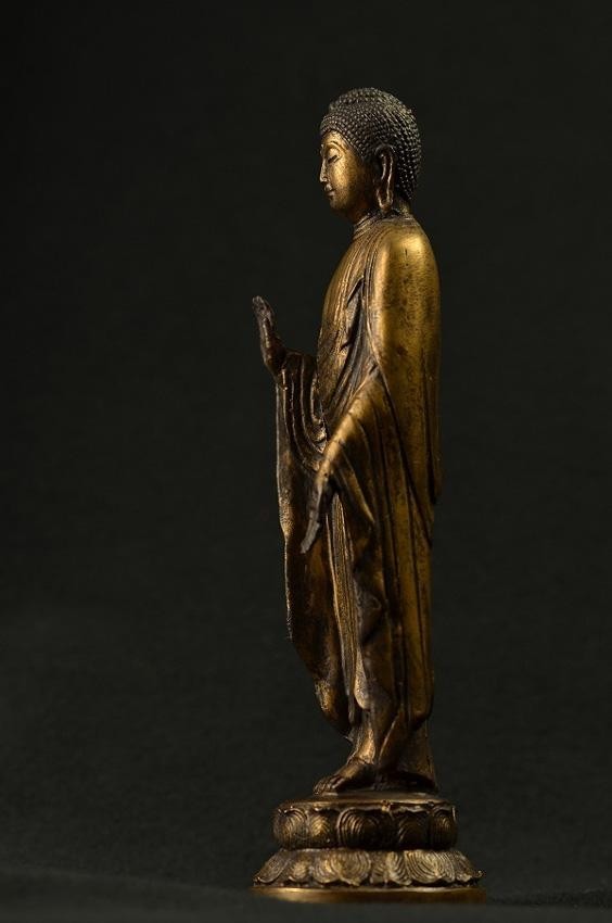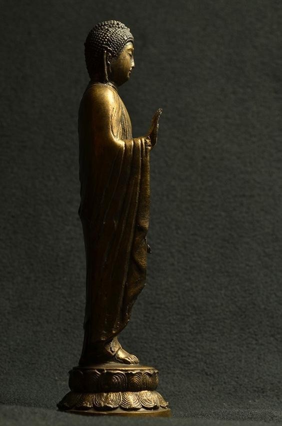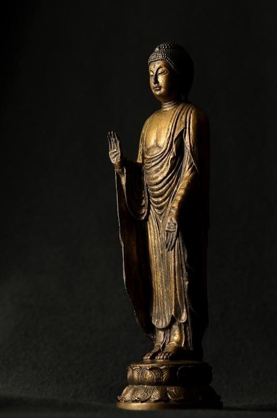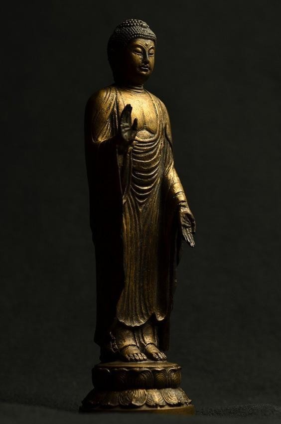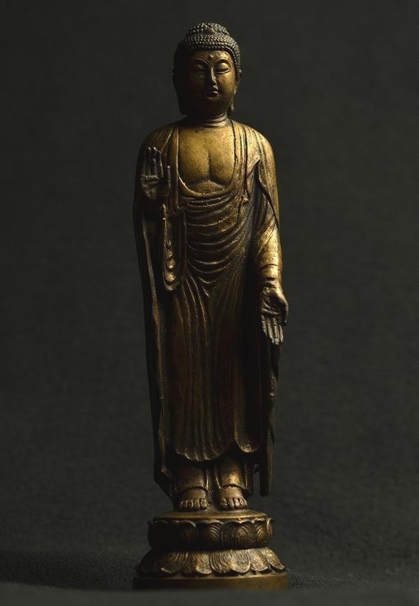 古えより鎮座する古仏像の魅力をそのままに。黄銅製金銅仏仕上げによる釈迦如来立像です。