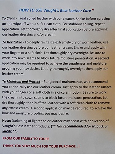 Brand:Vaught's Best Item Weight:0.8 ounces Product Dimensions:2.8 x 2.8 x 1.8 inches ASIN:B01LXEZQI7 Customer Reviews:4.5 out of 5 stars 25 customer reviews 4.5 out of 5 stars Best Sellers Rank:#31,564 in Automotive (See top 100) #180 in Automotive > Car Care > Interior Care > Leather Care Shipping Weight:0.8 ounces (View shipping rates and policies) Date First Available:October 3, 2016